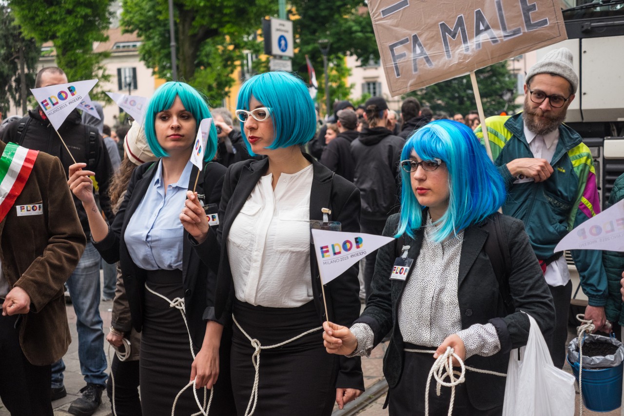 Mi siedo stravolto sul sedile del treno, mi svesto…sotto sono fradicio di sudore e pioggia, i vestiti che odorano di lacrimogeni e macchine in fiamme. Mi gira la testa…calo d’adrenalina forse…forse invece è perché ho girato Milano in lungo e in largo seguendo quello che prima sembrava un serpentone di gente in allegra e civile protesta, ma che nel giro di venti minuti e un paio di deviazioni é diventato caos. All’inizio era una ‘quasi festa’. Gente che protestava con colori e costumi, balli sincronizzati da tamburi, macchine addobbate e chiassose, cartelli e slogan.