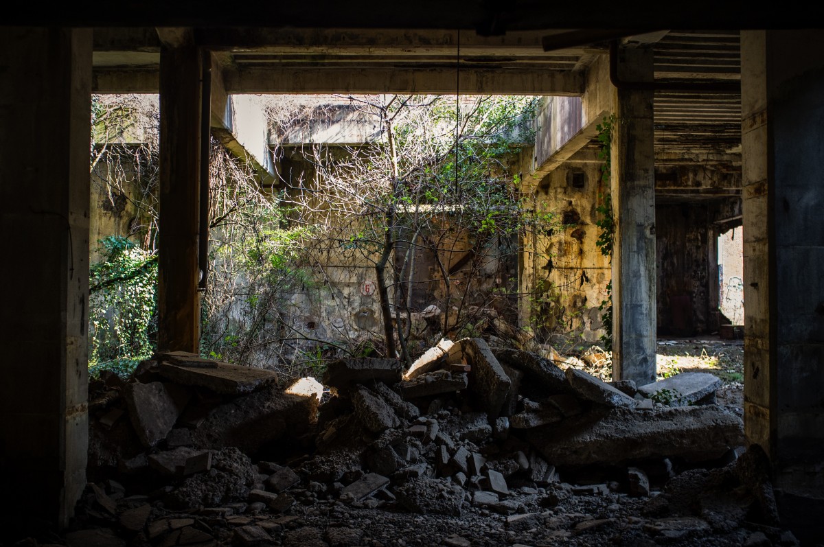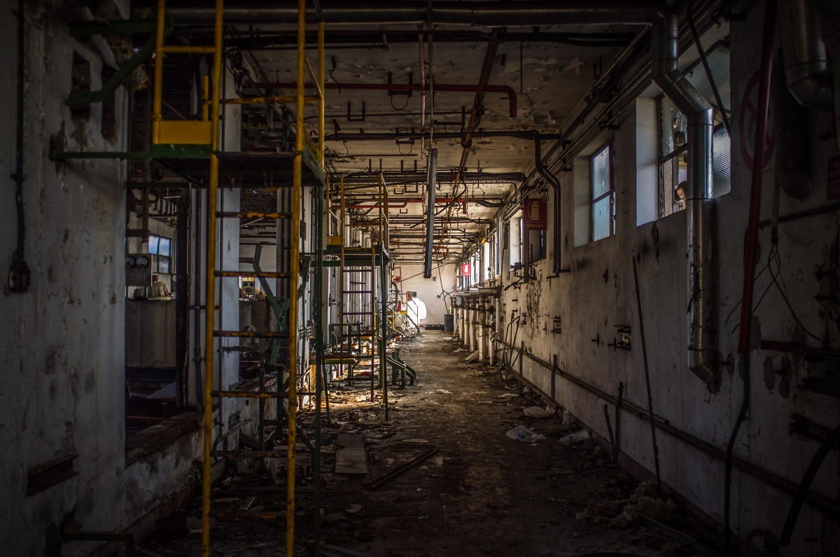 Nel suo “orrore, nella sua esagerazione, mi piace. La maggior parte delle rovine industriali si assomiglia parecchio di solito…enormi stanzoni vuoti, pilastri di cemento grigi rosicchiati dal tempo e vetri rotti. Poco altro da vedere in mezzo a tanti spazi vuoti, di solito.
